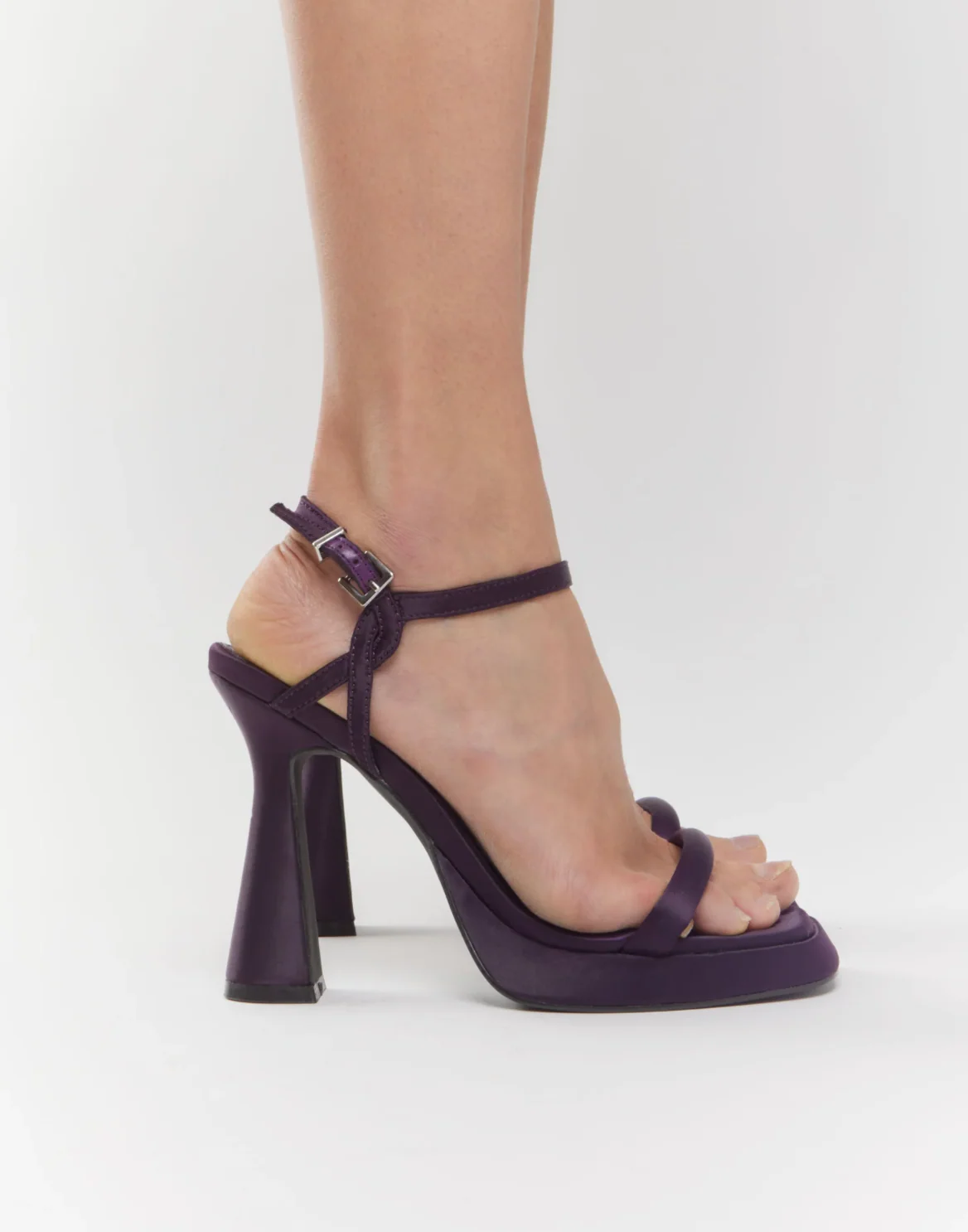 Step into confidence with the Luna Platform Heel, a bold yet elegant heeled sandal designed to turn heads. Crafted in rich purple satin, this standout style features a square platform and thin heel that offer both height and drama. The single strap across the front adds minimalism to the silhouette, while the adjustable ankle buckle keeps your stride secure. Whether paired with a slinky dress or elevated denim, these heels promise to steal the spotlight.