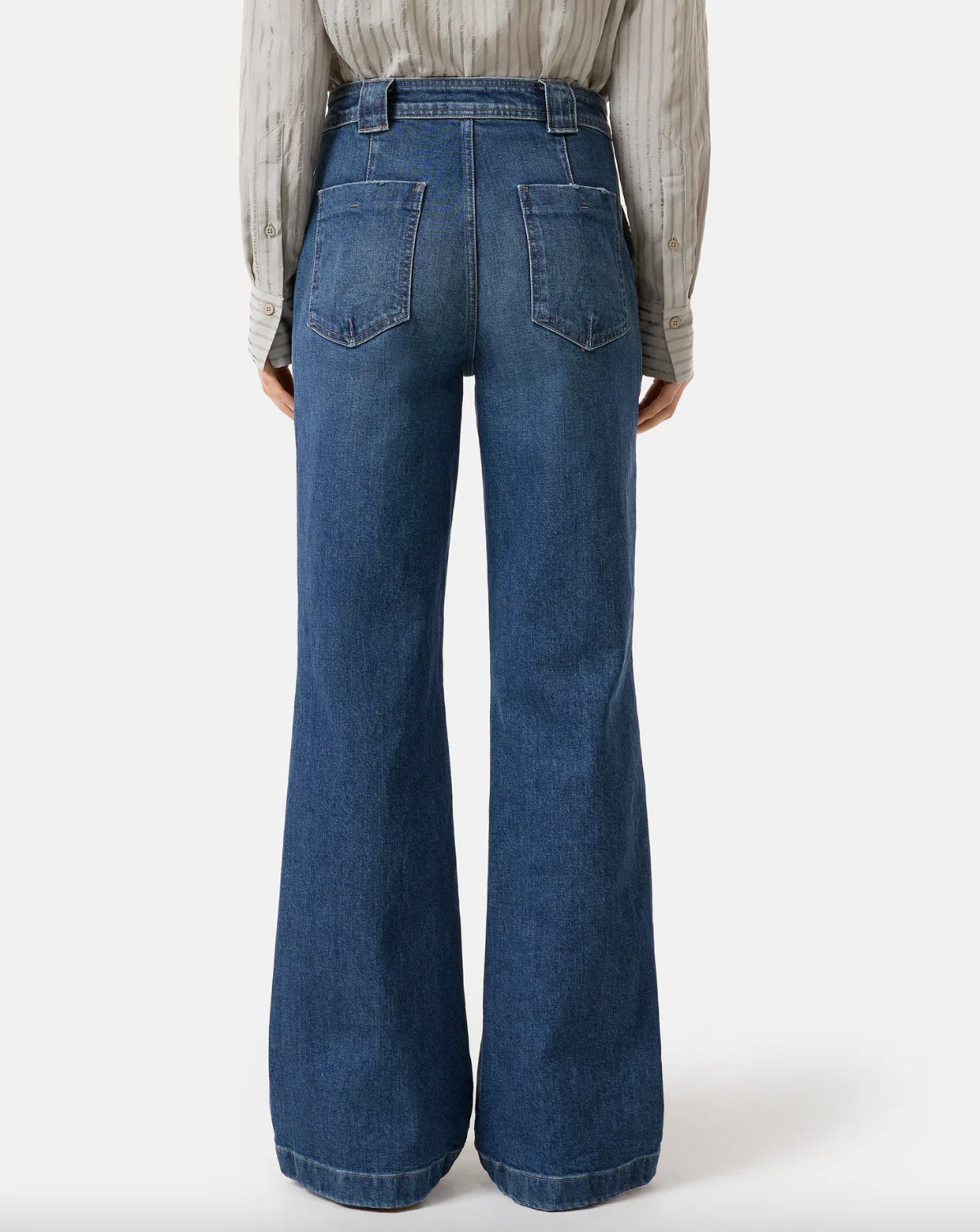 The Aria jeans are the perfect balance of comfort and style. Crafted from lightweight ecru-white comfort denim, these slim-fit, high-waist jeans offer a flared leg for a flattering, retro-inspired silhouette. With just the right amount of stretch, these jeans allow for freedom of movement—ideal whether you’re walking, cycling, or simply enjoying a day out. The tonal stitching and high-quality Italian fabric give the Aria jeans a clean, sophisticated look that pairs well with any wardrobe staple.
