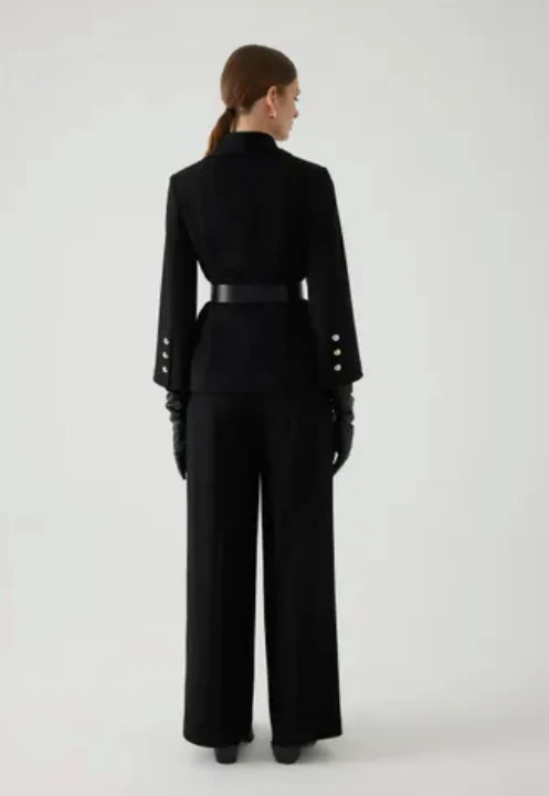 This elegant black jacket features a stylish belt and wide pockets, merging modern design with practicality. The regular fit ensures comfortable wear, while its refined look enhances your daily style. Perfect for both work and social events, this jacket seamlessly combines functionality with sophistication.