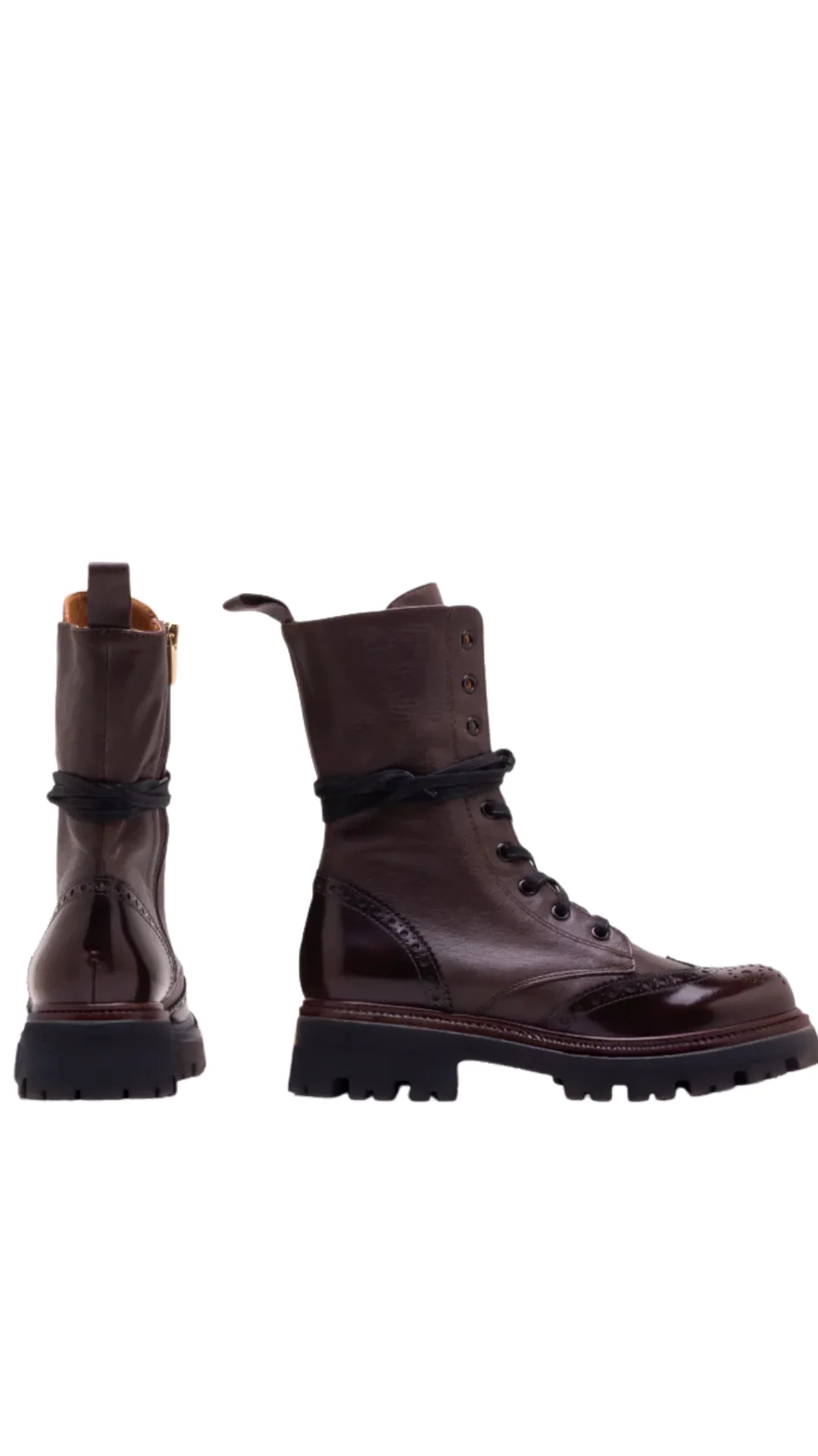 Step out in style with our lace-up zipper ankle oxford combat boot, crafted from soft genuine leather in a sleek brown patent finish. Designed for comfort and durability, these boots feature an extra light rubber sole with a 3 cm heel height, making them perfect for all-day wear. The lug sole adds traction and a touch of rugged flair, while the made-in-Italy craftsmanship ensures top-notch quality. Elevate your footwear game with these versatile combat boots that effortlessly blend sophistication and practicality!
