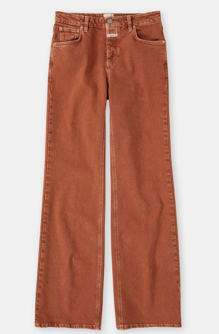 Walking 10,000 steps every day or cycling to work and back? This type of slightly stretchy denim won’t get in your way! In a slim fit with a low waist and flared legs: our 5-pocket jeans made from strong denim.