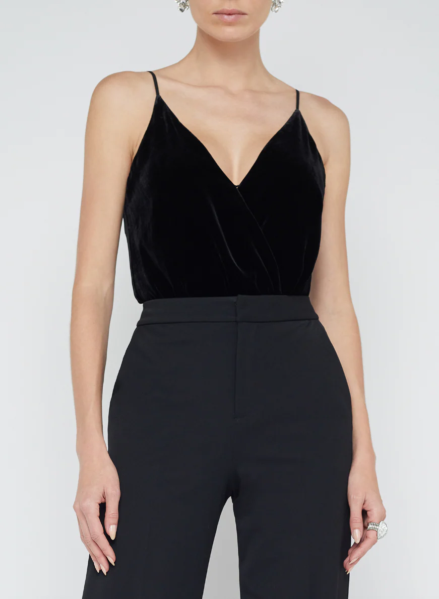 This is the bodysuit for glamour with its sultry deep V-neck and luxurious silk-infused velvet fabric. The cross-front style with a hook and eye closure creates a flattering, feminine silhouette, while adjustable straps ensure a customized fit. Designed for comfort and style, the 2-snap cheeky gusset closure with stretch offers ease of wear and a seamless look under any outfit. Perfect for dressing up or down, the Jaxon Bodysuit is a versatile piece that effortlessly transitions from day to night, adding a touch of elegance and edge to your wardrobe.