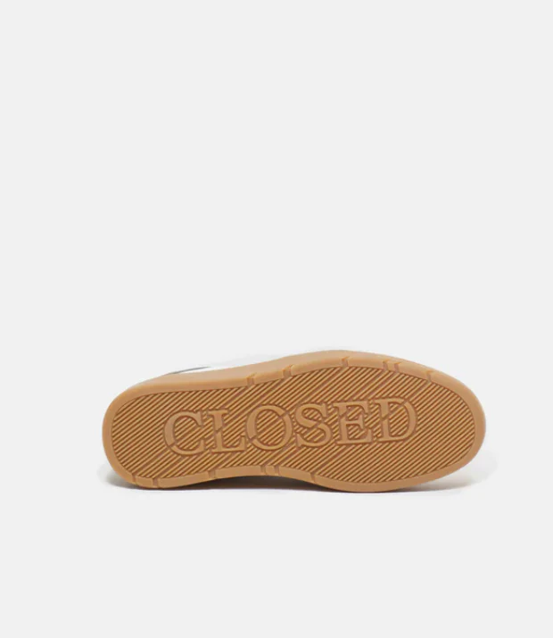The Closed low-top sneaker, a perfect blend of minimalist design and everyday comfort. Featuring a sleek white and black color palette, this sneaker is accented by a rich brown sole, elegantly incorporating the Closed logo.The perforated toe allows for breathability, while the logo label on the tongue adds a subtle touch of sophistication. Enjoy customizable comfort with the removable leather insole, making these sneakers ideal for all-day wear. Versatile and chic, they effortlessly elevate any casual outfit. Perfect for those who appreciate quality and understated elegance.